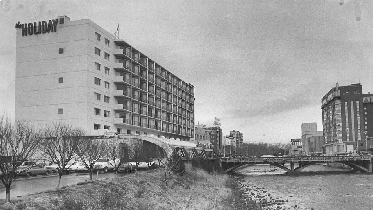 Dinner On The River, by Oliver Bassett, approximately 1971-1975 in one of his sketchbooks. This restaurant was located at The Holiday Hotel in Reno, Nevada, and can be seen from a different angle in this historical photo from 1981. The restaurant that's there today is The Shore Waterfront Dining, but it's been fully remodeled since then.