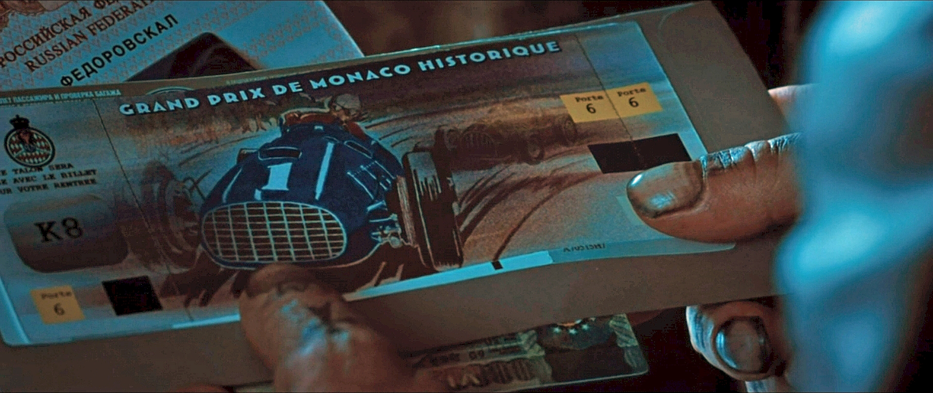 I do not believe the poster made it into the final cut of the movie, but parts of the image were used for this Grand Prix entry ticket that was held by character Ivan Vanko (Mickey Rourke) early in the movie.